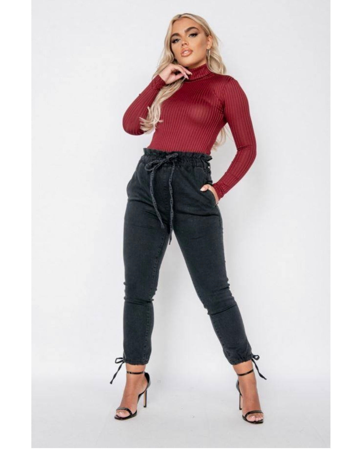 Achieve Effortless Chic Look with Our Denim High Waist Tie Jogger Jeans.