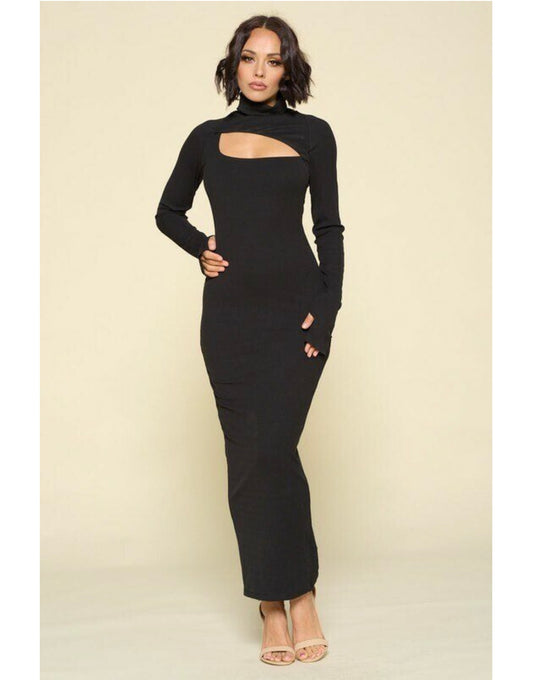 TURTLENECK CUTOUT FRONT MAXI DRESS