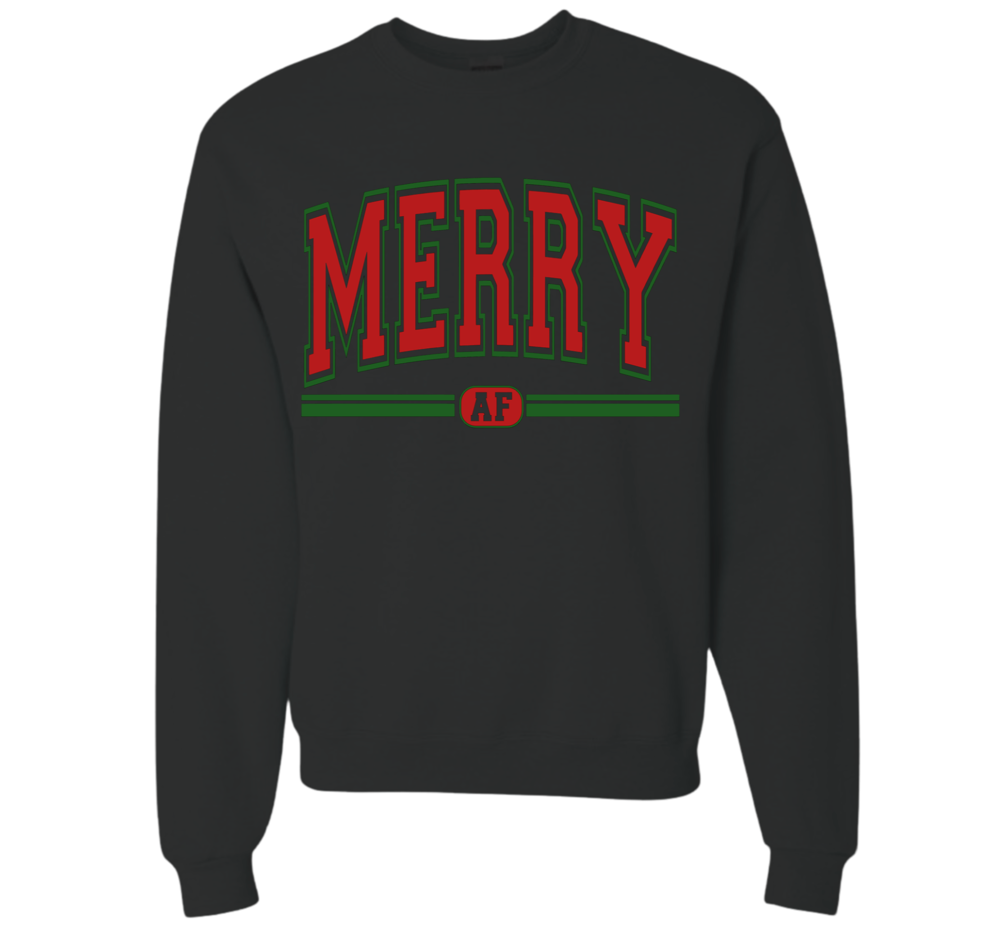 Forget boring holiday sweaters—this one's got attitude. The Merry AF Sweatshirt brings irreverent humor to your festive wardrobe with bold, cheeky lettering that'll get laughs at every ugly sweater party and holiday gathering. Cozy, comfortable, and unapologetically fun, it's the perfect way to spread holiday cheer with a wink and a grin. Ideal for anyone who celebrates the season on their own terms.